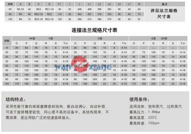 Q型旋轉(zhuǎn)接頭規(guī)格型號(hào):QS-X(65-100)適用條件: