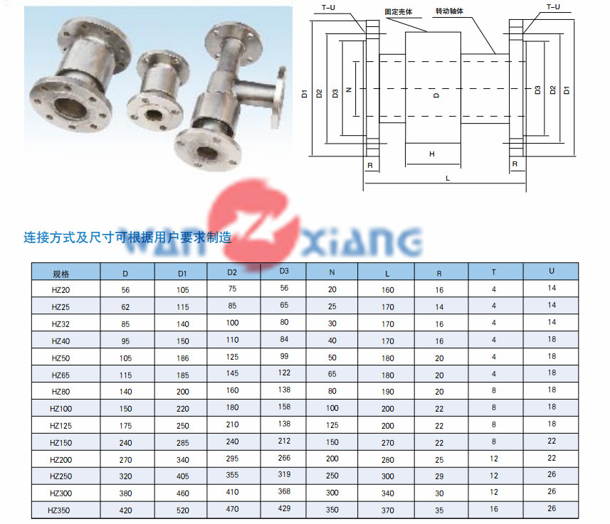 HZ型旋轉(zhuǎn)接頭,是專門用于鋼性管道之間流體介質(zhì)的活動(dòng)連接起到往復(fù)或低速旋轉(zhuǎn)運(yùn)動(dòng),具有較高的耐磨性,旋轉(zhuǎn)靈活,支撐能力強(qiáng),密封采用美國派克密封,具有可靠的密封性能。